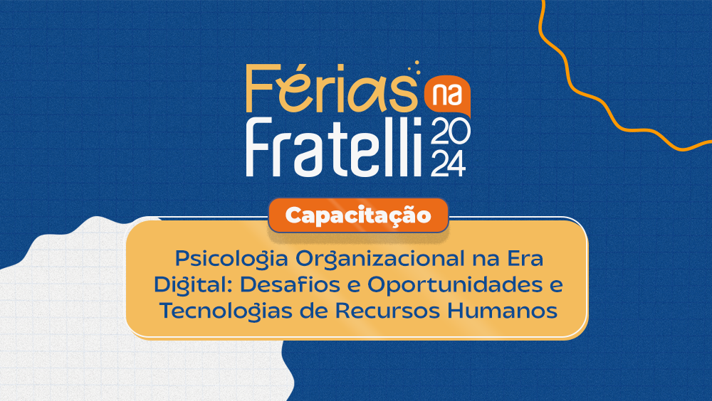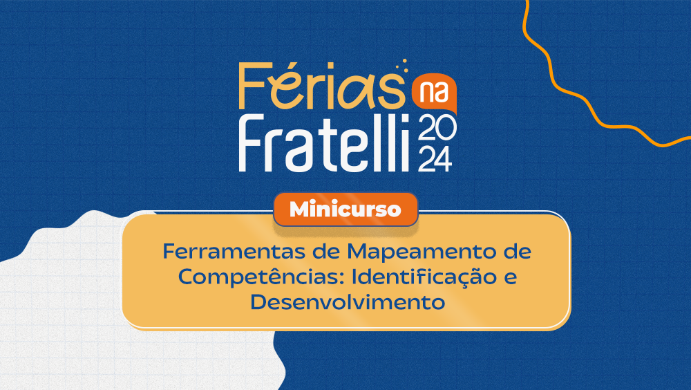 O tema “Gestão” faz parte da Programação do Férias na Fratelli 2024 e foca nas possibilidades de uma atuação assertiva e estratégica no campo da Psicologia Organizacional e Gestão de Pessoas. Contando com 4 cursos, cujas modalidades variam entre Minicurso e Capacitação, os subtemas abrangem desde a Psicologia Organizacional na Era Digital e Desenvolvimento de Competências Emocionais no Trabalho, à atuação com Ferramentas de Mapeamento de Competências e Estratégias de Retenção de Talentos, promovendo um espaço de desenvolvimento e destaque de diferenciais para o mercado.