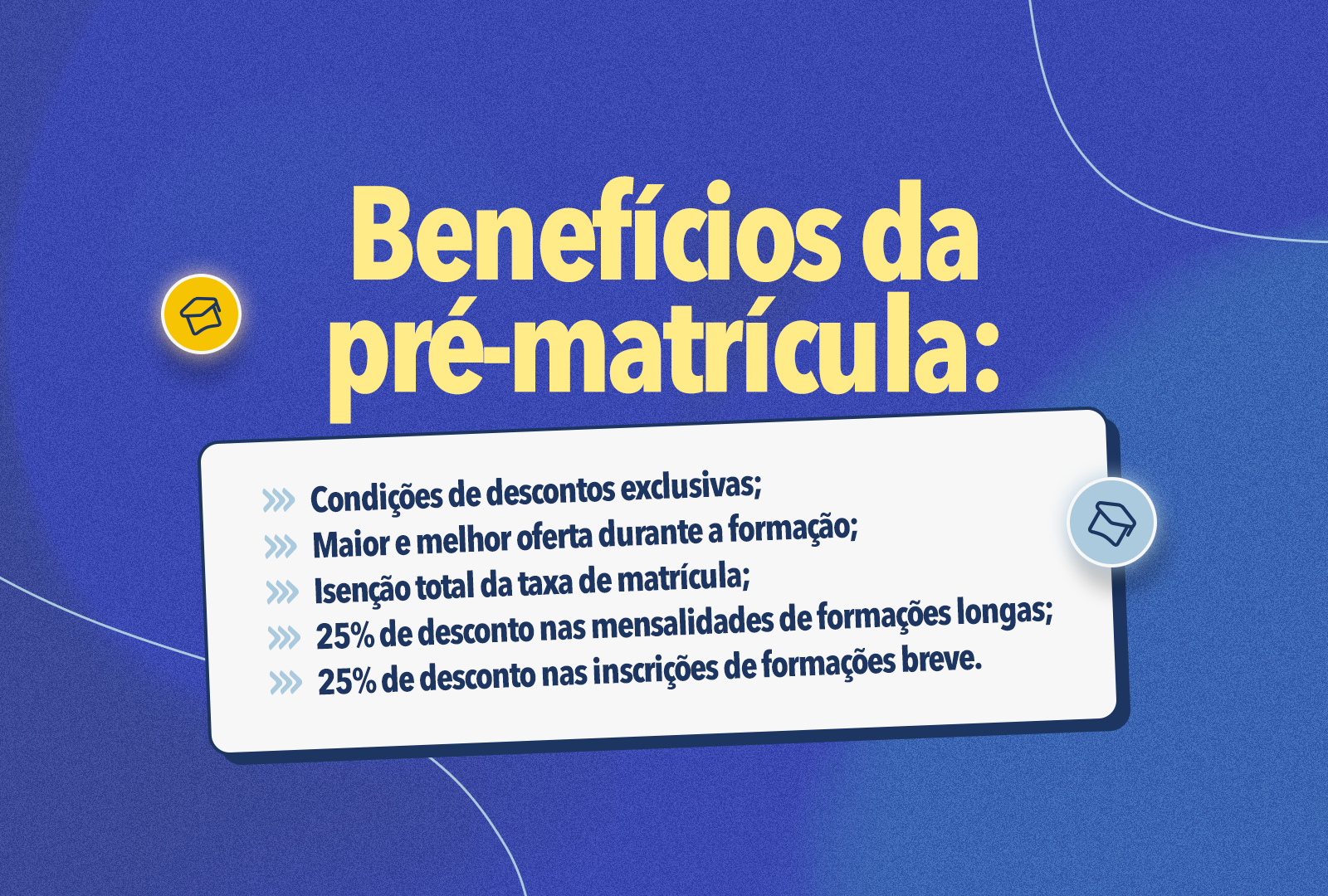 Nossas formações mais esperadas estão com pré-matrículas abertas. Essa é a sua chance de reservar sua vaga com prioridade, acessar condições especiais e se planejar com tranquilidade para os próximos aprendizados. Inscreva-se na lista de interesse e receba todas as informações em primeira mão!
